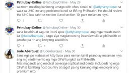 Date of Conversation: May 29 – 30, 2020 Patnubay-Online sa zoom meeting kaninang umaga with OFWs, sinabi ni @attyharryroque na wala sa UHC law ang problema kundi sa IRR ng Philhealth. He should review the…