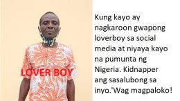 Kasunod ng pagkasagip sa isang Pinay, na anim (6) na buwang bihag ng isang lover boy sa Nigeria, isang Amerikana naman ang nasagip ng Nigerian Police Force at Interpol, at tatlong (3) lover boys ang…