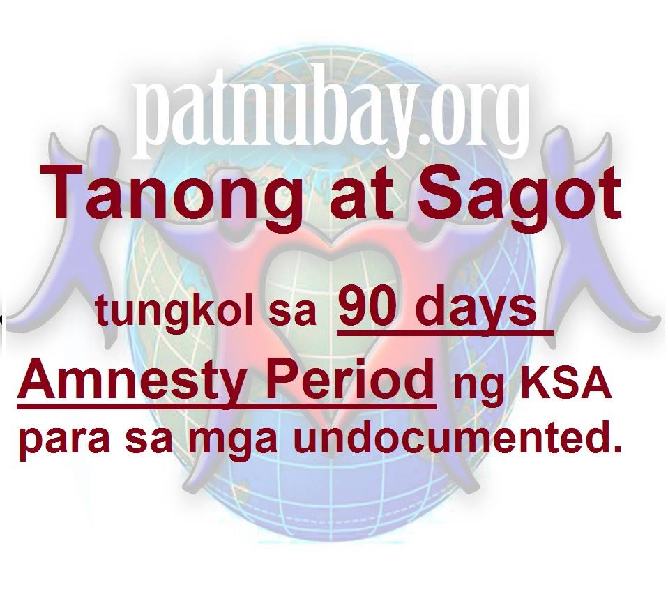 Tanong at Sagot tungkol sa 90 days Amnesty Period ng KSA para sa mga undocumented.