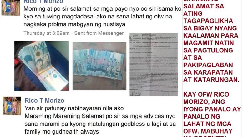 KAY OFW RICO MORIZO, ANG IYONG PANALO AY PANALO NG LAHAT NG MGA OFW. MABUHAY KA BROTHER!