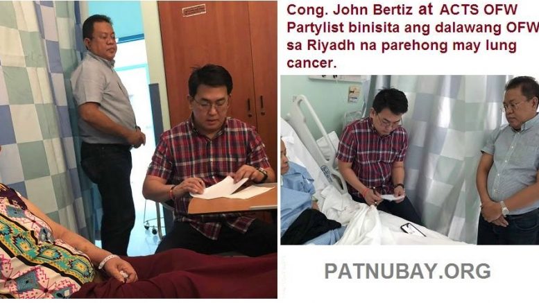 Congressman John Bertiz at ACTS OFW Partylist binisita ang dalawang OFW sa Riyadh na parehong may lung cancer.