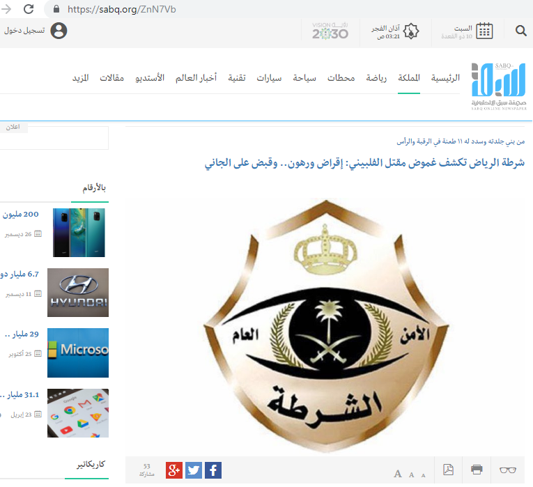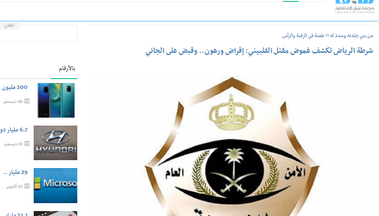 Riyadh police reveal the mystery of the killing of the Philippines: lending and mortgages .. and arrested the offender
