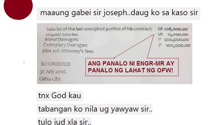 MAHIGIT 2 MILYON PESOS ANG PANALO NI ENGR-MR, ISANG OFW MULA SA AL KHOBAR – SAUDI ARABIA; LABAN SA KANYANG AGENCY.