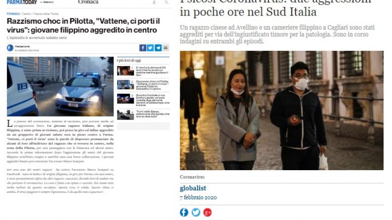 Parma, Italy – Isang Filipino-Italian ay nilapitan ng isang pangkat ng mga kabataan at pinagsabihan na “Umalis ka dito, nagdala ka ng virus!”. Nasundan pa ito ng pisikal na pananakit. Dumulog na ang biktima sa isang abugado.