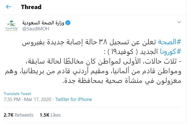 - https://twitter.com/SaudiMOH/status/1239953561653477380