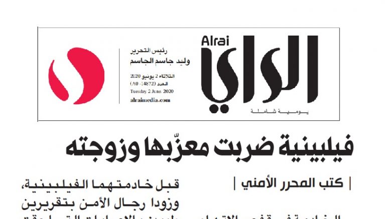 A security source told Al-Rai that a citizen and his wife went to the security forces in the Jaber Al-Ahmad area, and they submitted a report stating that they had been beaten by their Filipino maid, and they provided the security men with two medical reports of their injuries, and they were referred to an investigation in connection with a case of beating and summons. Accused of listening to her words.