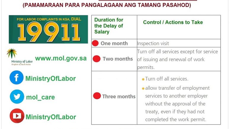 Kung dalawang (2) buwan na delay ang sahod – Tatanggalan ang company ng lahat services at online access ng Ministry of Labor maliban sa pag-issue at pagrenew ng work permit.