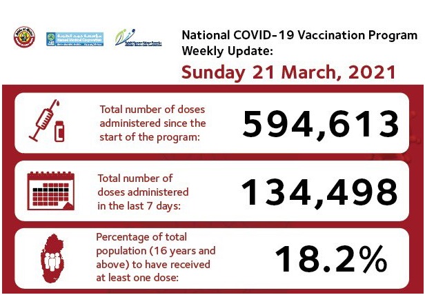 MOPH Qatar: National COVID-19 Vaccination Program Weekly Update: Sunday 21 March, 2021