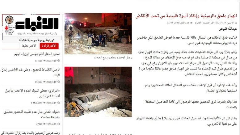 It is noteworthy that Al-Anbaa published the details of the accident as soon as a report was received regarding the collapse incident on its website.