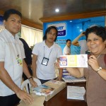 March 26, 2012 -Today, we went to NAIA to deliver the OAV posters and OFW SOS flyers. We were received by Mr Dante Basanta, terminal manager of MIAA (Manila Internationnal Airport Authorities) — from his office. We were accompanied to the OFW pre-departure lounge where the OAV registration is done. They have two machines there for data capturing. 200 per day daw ang turn out so far.